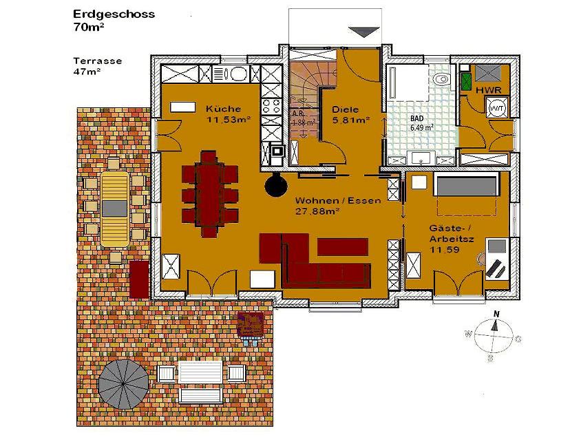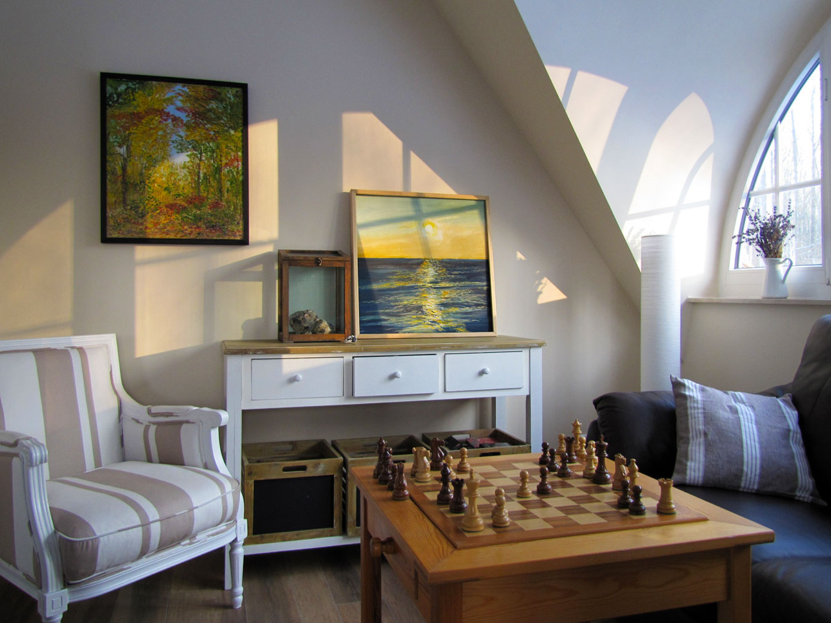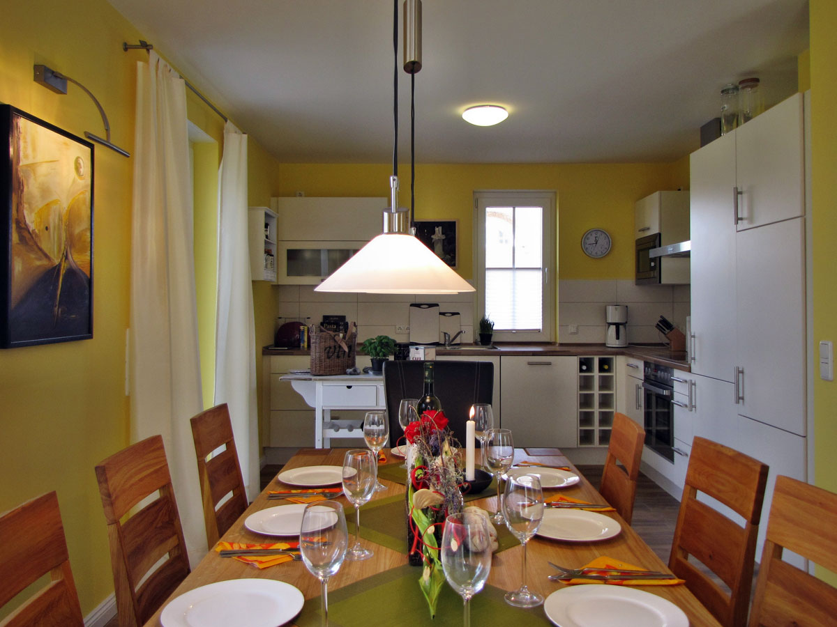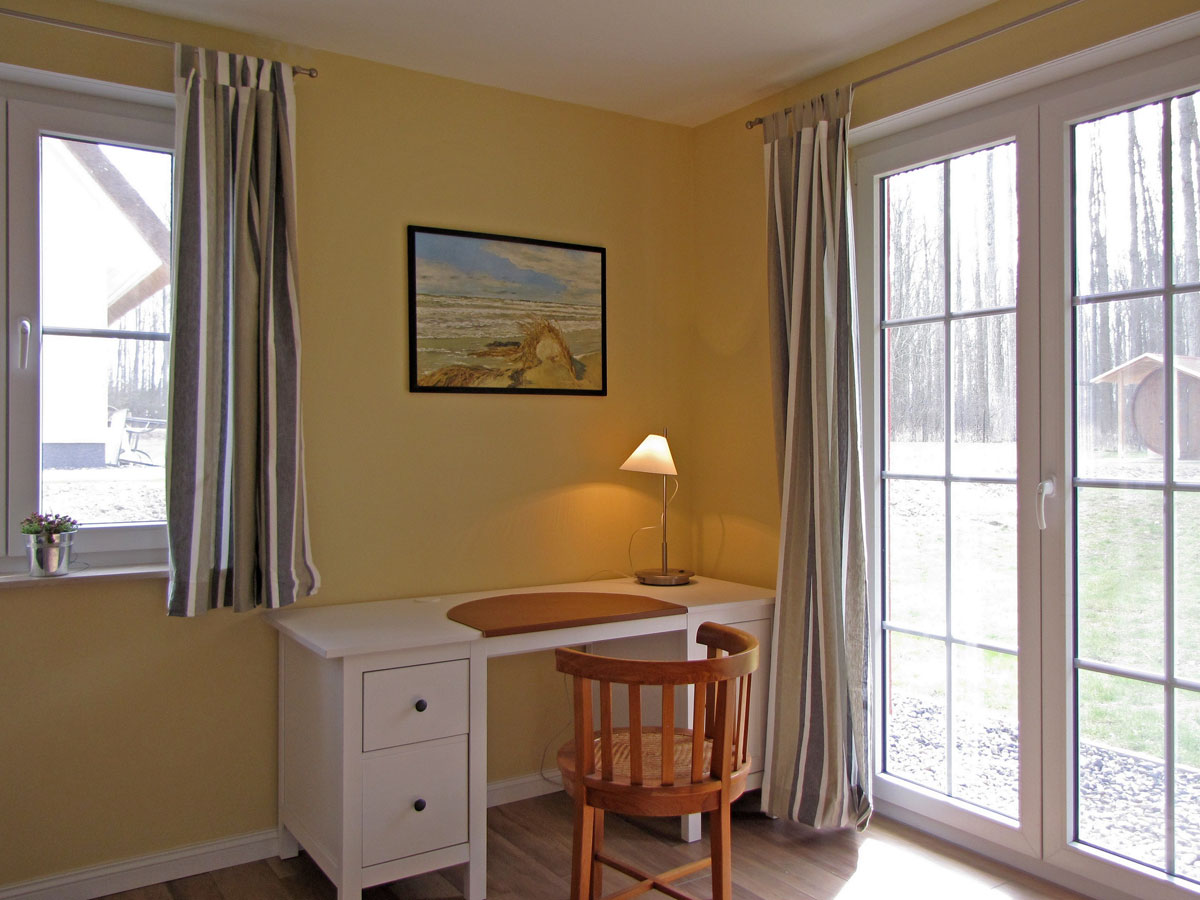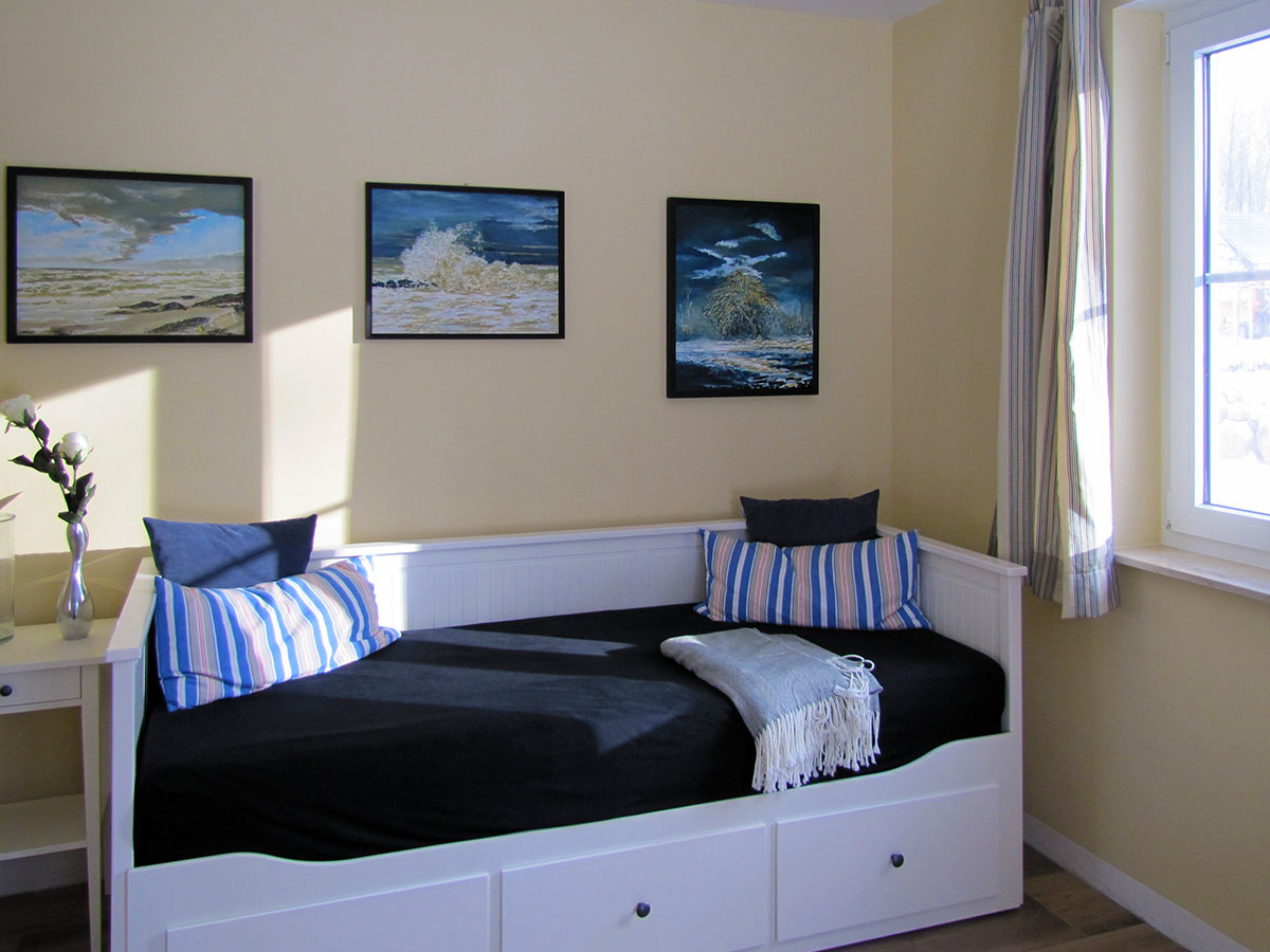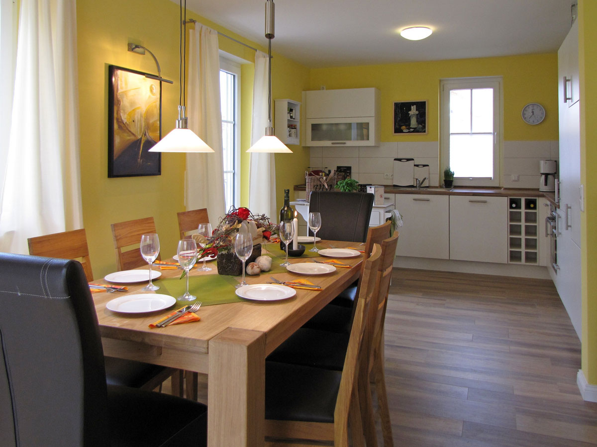 Das Haus Seeigel hat eine Wohnfläche von ca. 150 m² und ist modern und familienfreundlich überwiegend im Landhausstil eingerichtet. Hier werden Sie sich, gleich welcher Jahreszeit und welchem Wetters, ganz zu Hause fühlen. Entsprechend dafür wurde das Haus gebaut und eingerichtet. Das Konzept des Seeigels kommt Familien, die mit mehreren Generationen Urlaub machen wollen, entgegen. Das Bad im Erdgeschoss ist behindertenfreundlich eingerichtet. Das Schlaf- und Arbeitszimmer im Erdgeschoss macht bei Bedarf das mühevolle Treppensteigen unnötig. Das Obergeschoss verfügt über drei weitere Schlafzimmer mit insgesamt sechs Betten. Zwei Schlafzimmer sind mit Doppelbetten eingerichtet. In diesen Zimmern können auch die Kinderreisebetten bei Bedarf aufgestellt werden. Ein Zimmer ist als Kinderzimmer gedacht und mit zwei Stapelbetten ausgestattet, die Ihren Erfordernissen entsprechend gestellt werden können. Im ausgebauten Spitzboden befindet sich ein Wohn-/ Schlaf-Bereich mit zwei weiteren Stapelbetten. Alle Betten sind mit hochwertigen Matratzen ausgestattet. In den Doppelbetten haben die Matzratzen unterschiedliche Härtegrade, um Ihren Bedürfnissen weitgehend entgegenzukommen. Ein zweites hochwertiges Bad steht Ihnen während ihres Aufenthaltes im Dachgeschoss, mit Wanne, ebenerdiger Dusche und Doppelwaschbecken, zur Verfügung. Das gemütliche Wohnzimmer mit Kamin und Essbereich lädt alle ein, gemeinsame Zeit zu verbringen. In der großzügig ausgestatteten Küche können Sie gemeinsam Leckereien zubereiten. Das Haus bietet aber auch viele Rückzugsmöglichkeiten, um in kleineren Gruppen oder auch allein zu entspannen. So verfügt jedes Zimmer über Tisch und Stühle und gemütliches Polstermöbel lädt auf jeder Etage zum Verweilen ein. Bei entsprechendem Wetter stehen Ihnen zwei Terrassen mit je einem Tisch und 4 bzw. 9 Gartenstühlen zur Verfügung. Das Haus verfügt über eine umfangreiche Bibliothek in der Sie gerne stöbern können. Spiele, Spielzeug, DVD´s und viele Hörbücher stehen ebenfalls für Sie bereit. Zum Ferienhaus gehören selbstverständlich auch Waschmaschine, Trockner, Internetzugang per LAN/WLAN, zwei Kinderhochstühle, ein Kinderreisebett, Radio, ein LCD- Fernseher im Wohnzimmer und ein weiteres LCD-TV-Gerät im Spitzboden. Drei Pkw-Stellplätze befinden sich direkt auf dem Grundstück. Für Fahrräder gibt es einen Fahrradständer am Ferienhaus. Für das Barbecue steht ein Gartengrill mit umfangreichem Grillzubehör bereit. Das Ferienhaus ist ein Nichtraucherhaus und für Allergiker geeignet. Deshalb ist es komplett gefliest und Haustiere sind nicht erlaubt. |