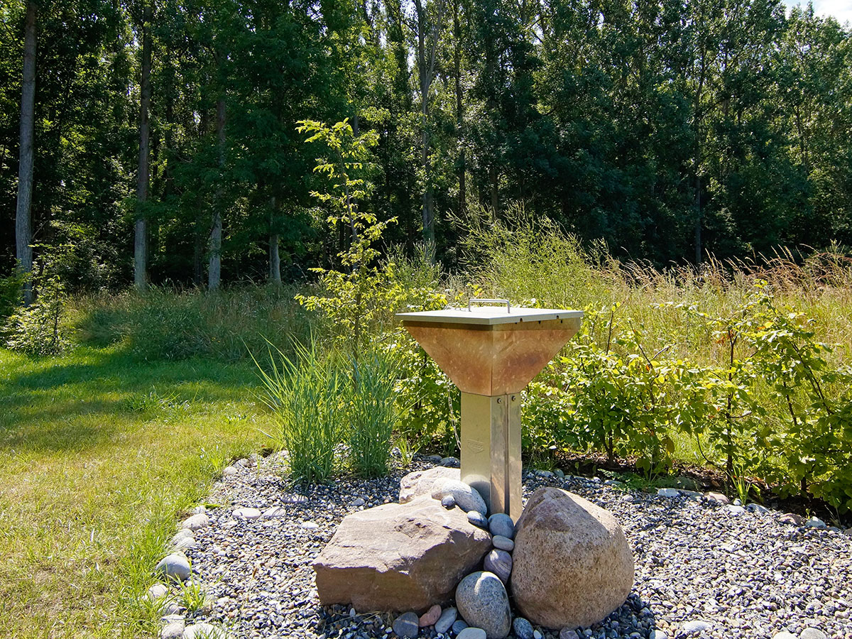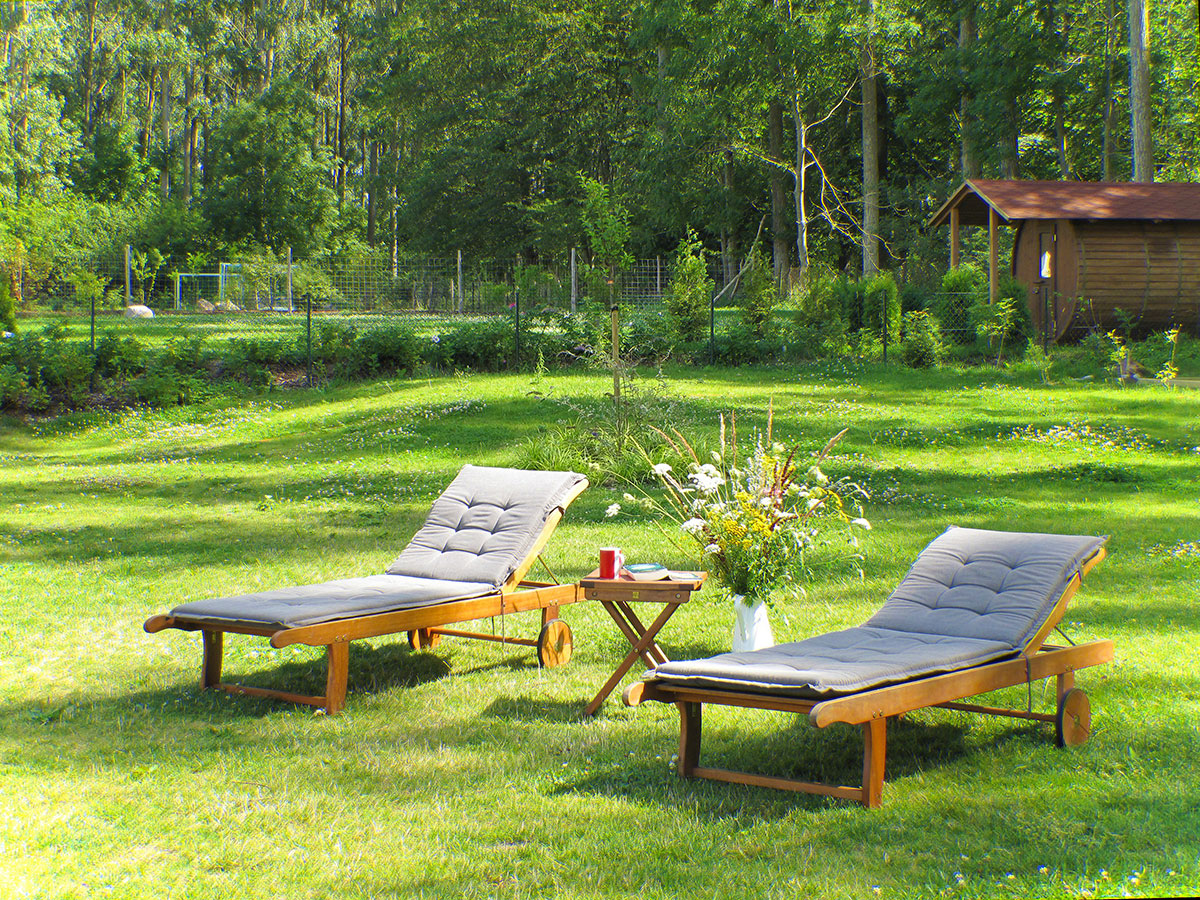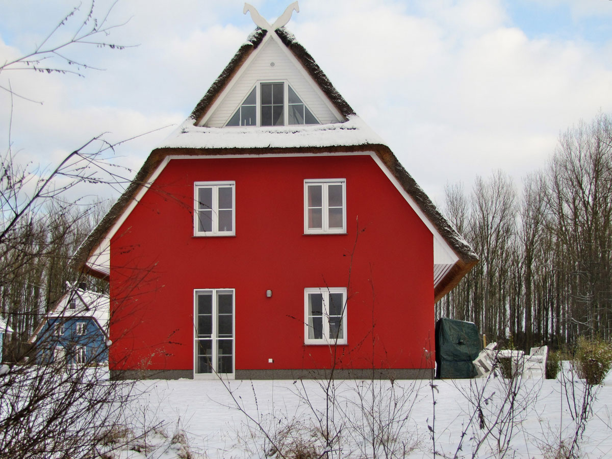 Das wunderschöne, großzügig eingerichtete Reetdachhaus Seeigel liegt im staatlich anerkannten Erholungsort Glowe auf der Insel Rügen im ruhigen und windgeschützten Teil des Ortes, unweit von Strand und Hafen. Das Haus befindet sich auf einem Endgrundstück direkt am Waldrand im neu errichteten Ostseepark Glowe. Die Lage des Hauses wird Sie für den längsten Anfahrtsweg im Ferienpark mehr als entschädigen. Wenn Sie das etwa 1100m² große Grundstück betreten, tauchen Sie in eine andere Welt ein. Nach Westen öffnet sich Ihnen der Blick über ursprüngliches Grasland mit großen Sanddornbüschen. Hier kann man auf der Terrasse wunderschöne Sonnenuntergänge erleben. Die Südterrasse lockt zum Frühstücken im Freien. Die großen Abstandsflächen zu den Nachbargrundstücken garantieren Ihnen die Ruhe, die Sie zum Erholen brauchen. Auf den Grünflächen laden Liegen zum Relaxen ein. Gönnen Sie sich ein gutes Buch, ein Glas Wein oder einfach die Sonne. Ein Strandkorb hilft Ihnen bei kühlerem Wetter, die Natur zu genießen. Hainbuchenhecken grenzen nicht ab, sondern machen neugierig auf das, was sich dahinter verbirgt, ideal für Kinder zum Versteckspiel. Eine Tischtennisplatte animiert zur Bewegung an frischer Luft und in ruhigen Zeiten sorgen die wilden Nachbarn, wie Hase und Hirsch, für Abwechslung auf dem Grundstück.